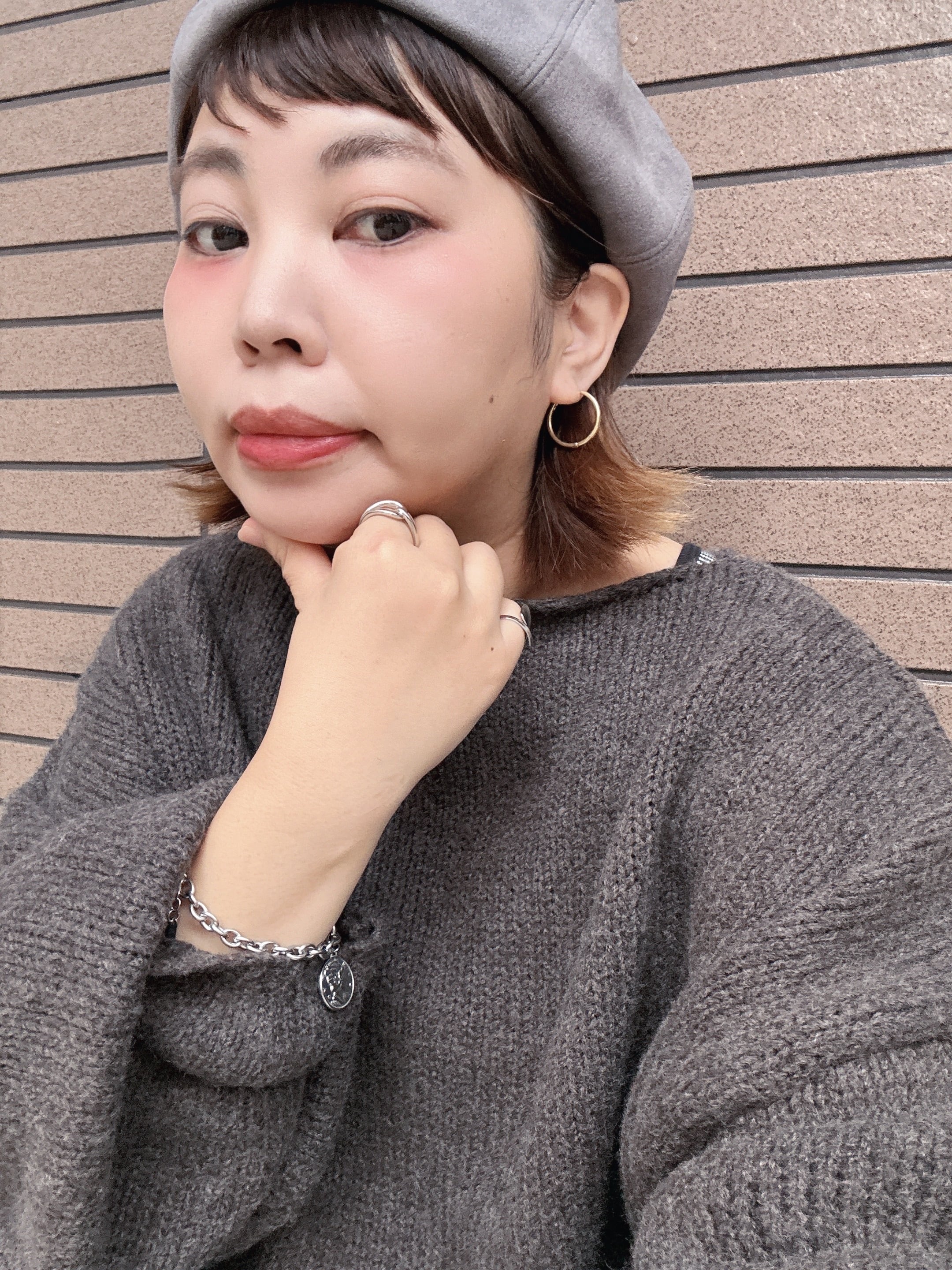 秋冬、ニットにチラ見せ垢抜けアイテムです。