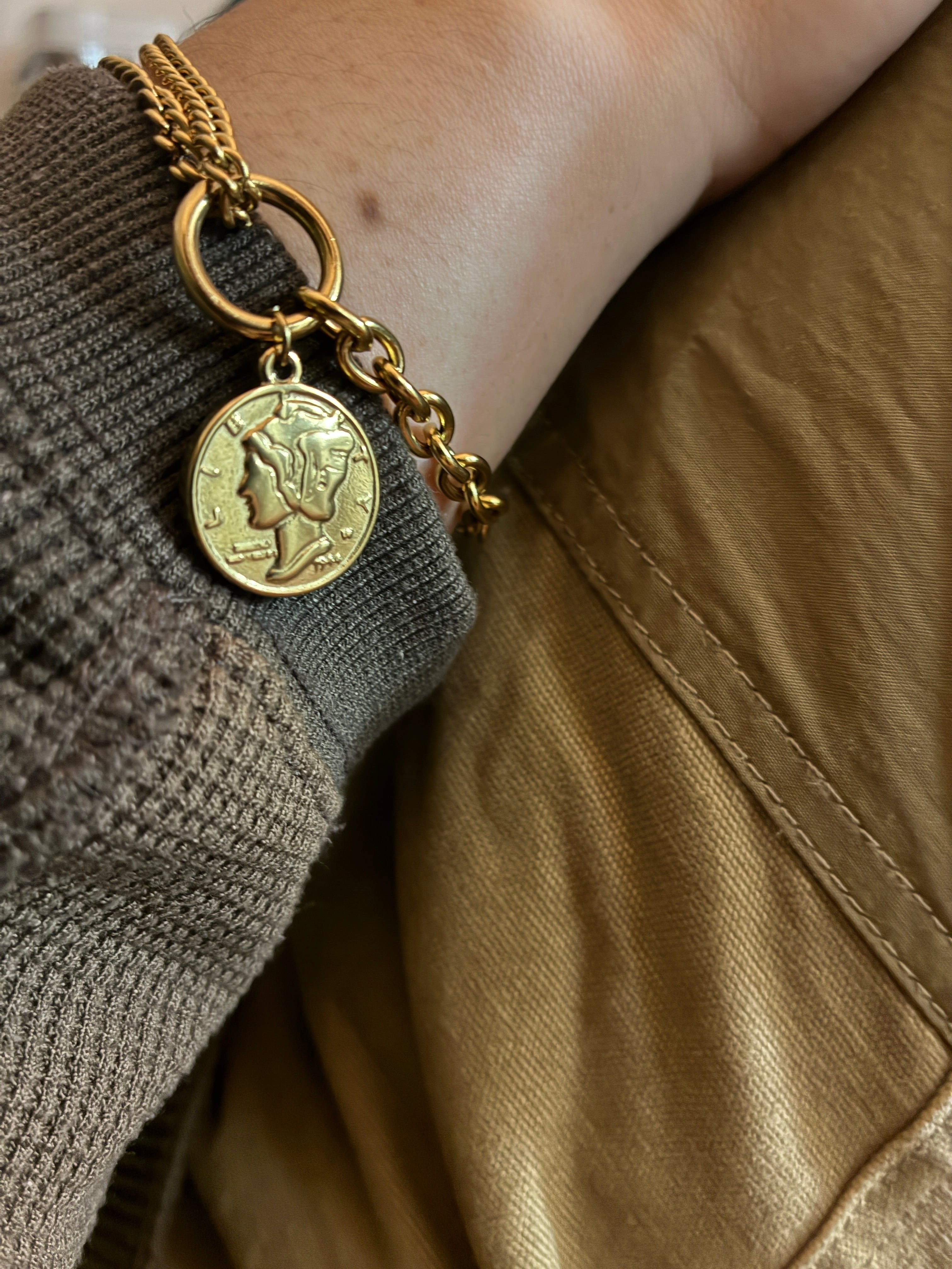 ヴィンテージステンレスコインブレスレット